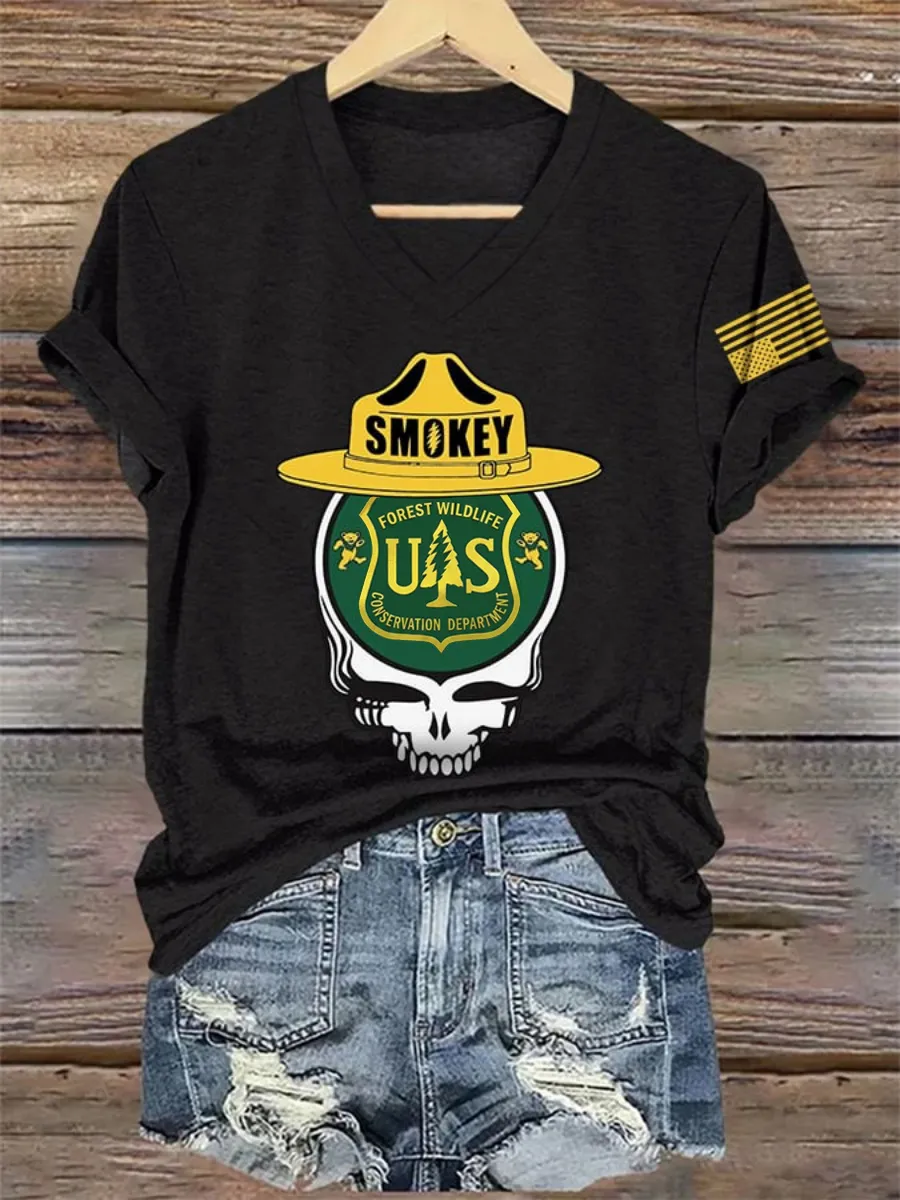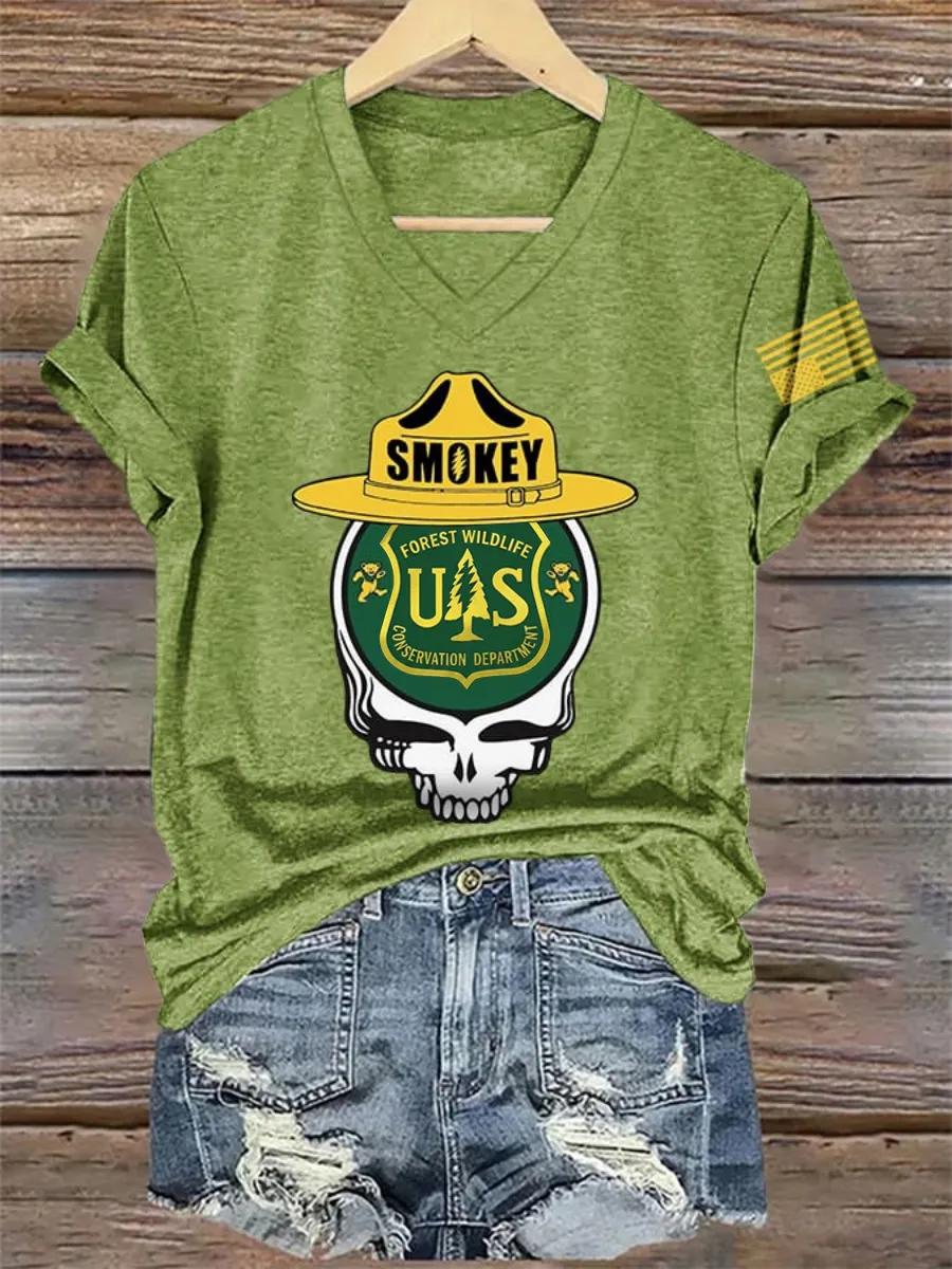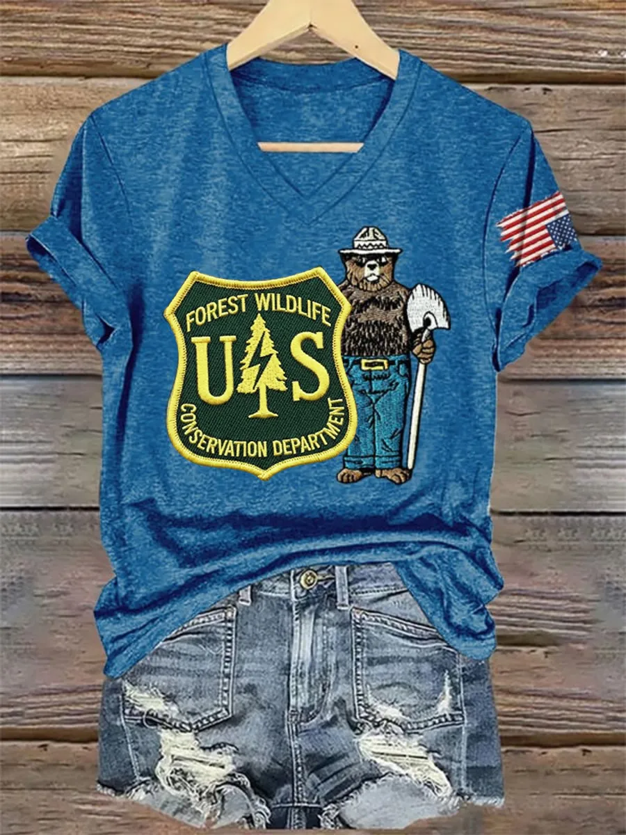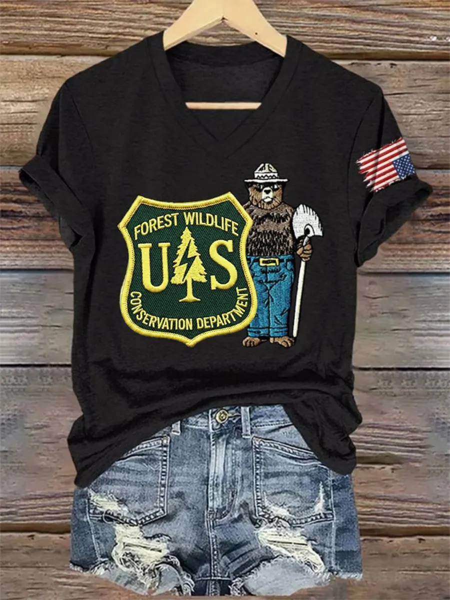 V-Neck Retro Protect The U.S. Forest Service Print T-Shirt