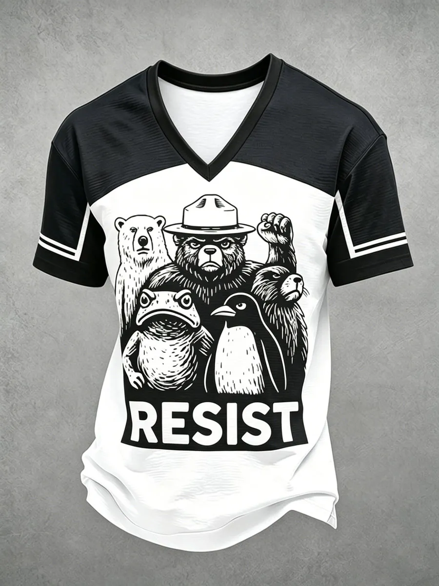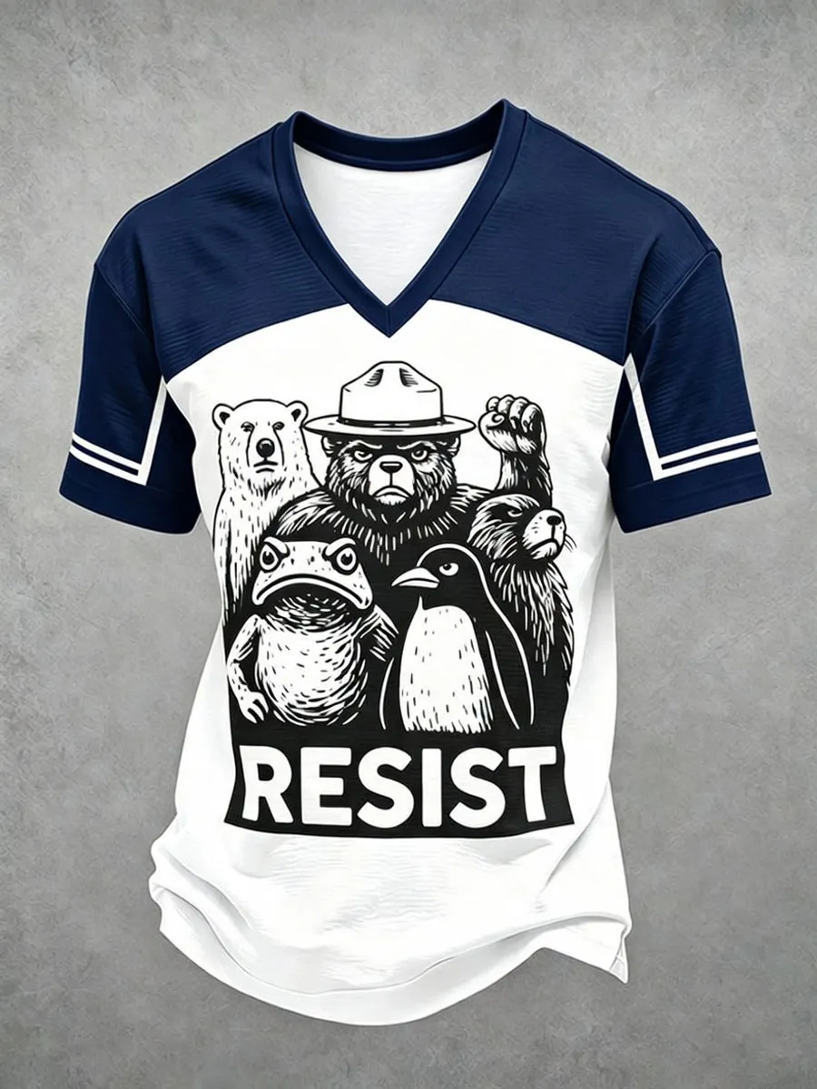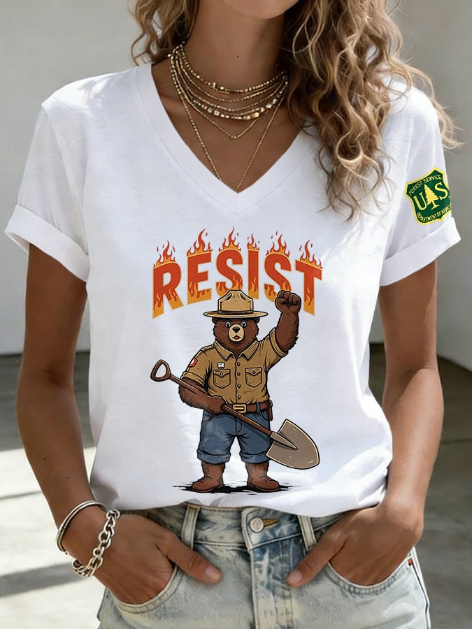 V-Neck Retro Resist Save The Forest Service Print T-Shirt