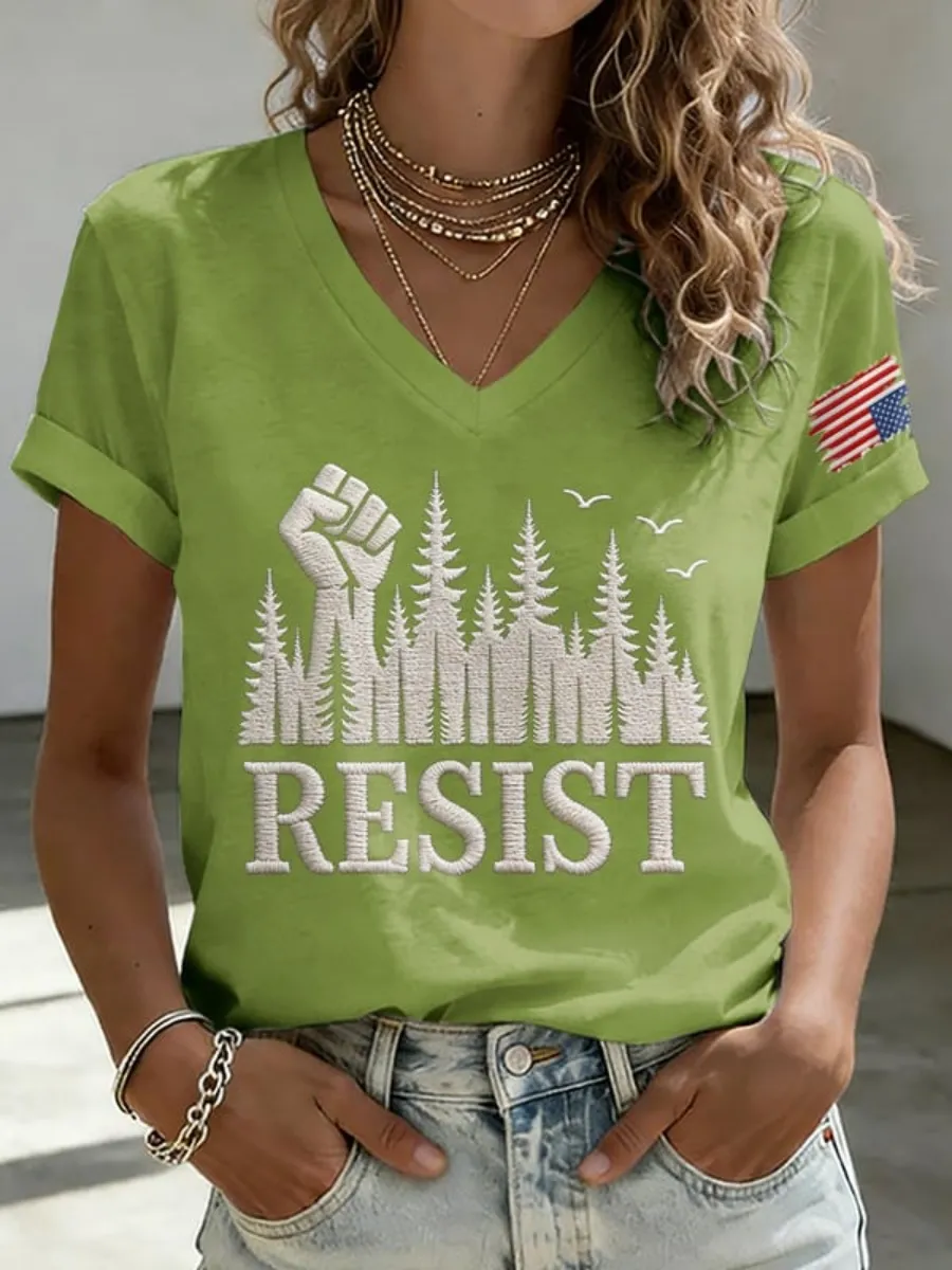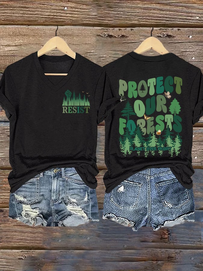 V-Neck Retro Resist Protect Our Forests Planet Over Profit Print T-Shirt