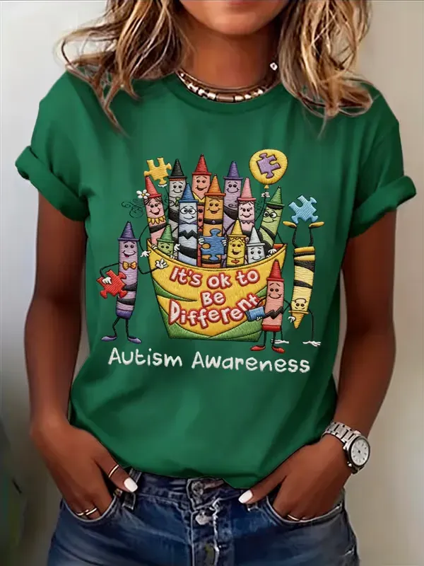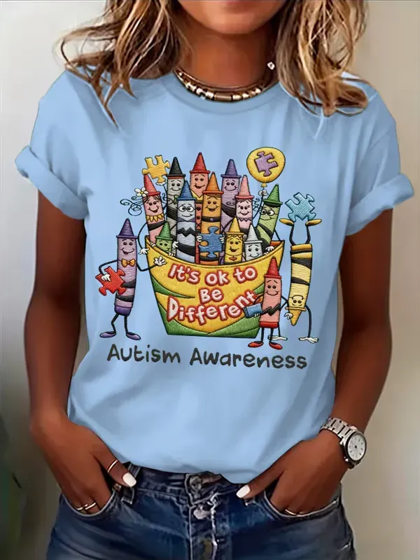 Women's Casual Autism Awareness Printed Short-Sleeve T-Shirt