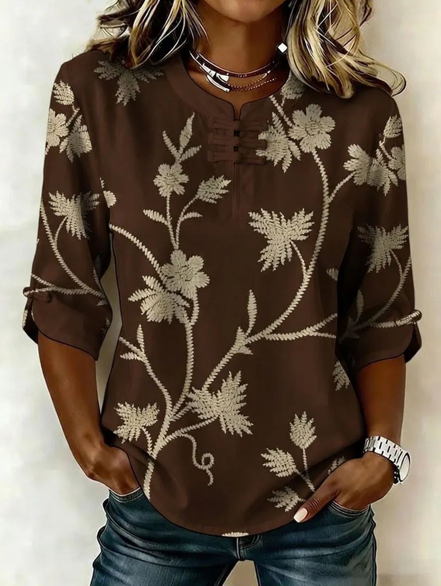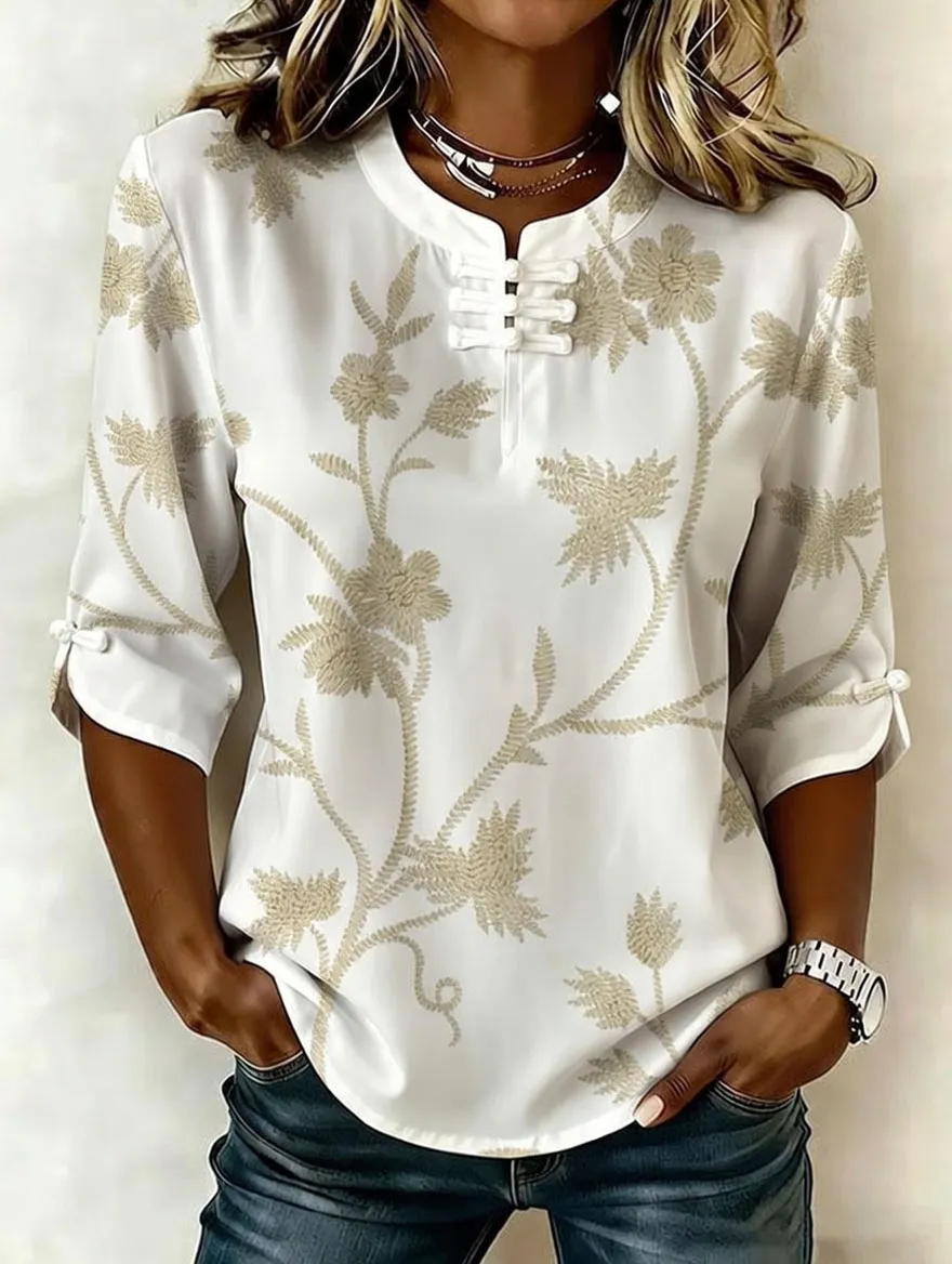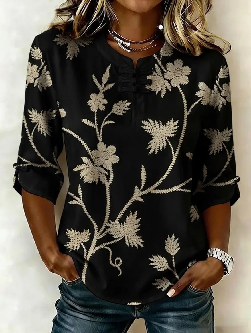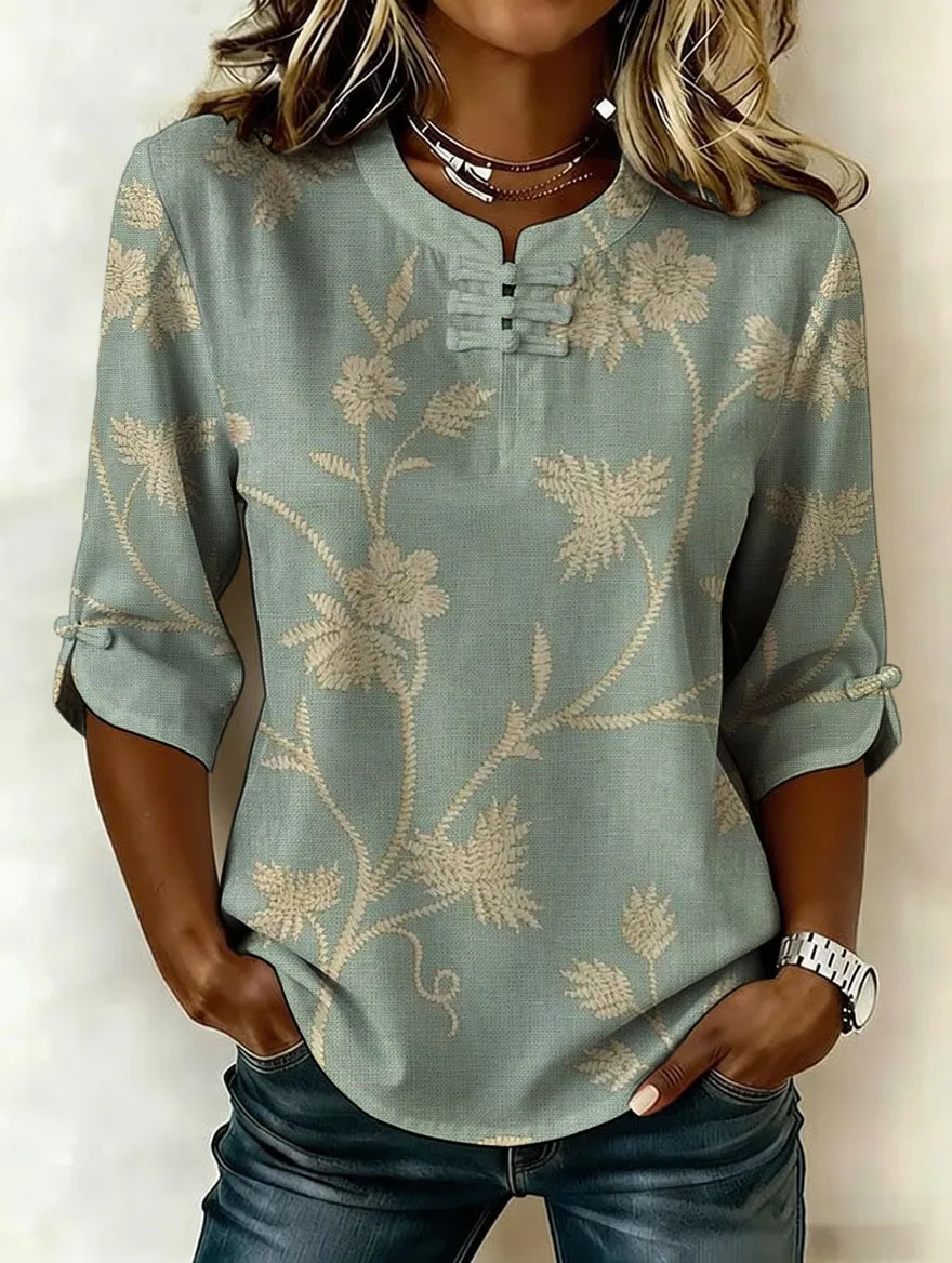Women's retro cotton Fried Dough Twists art printing design casual T-shirt